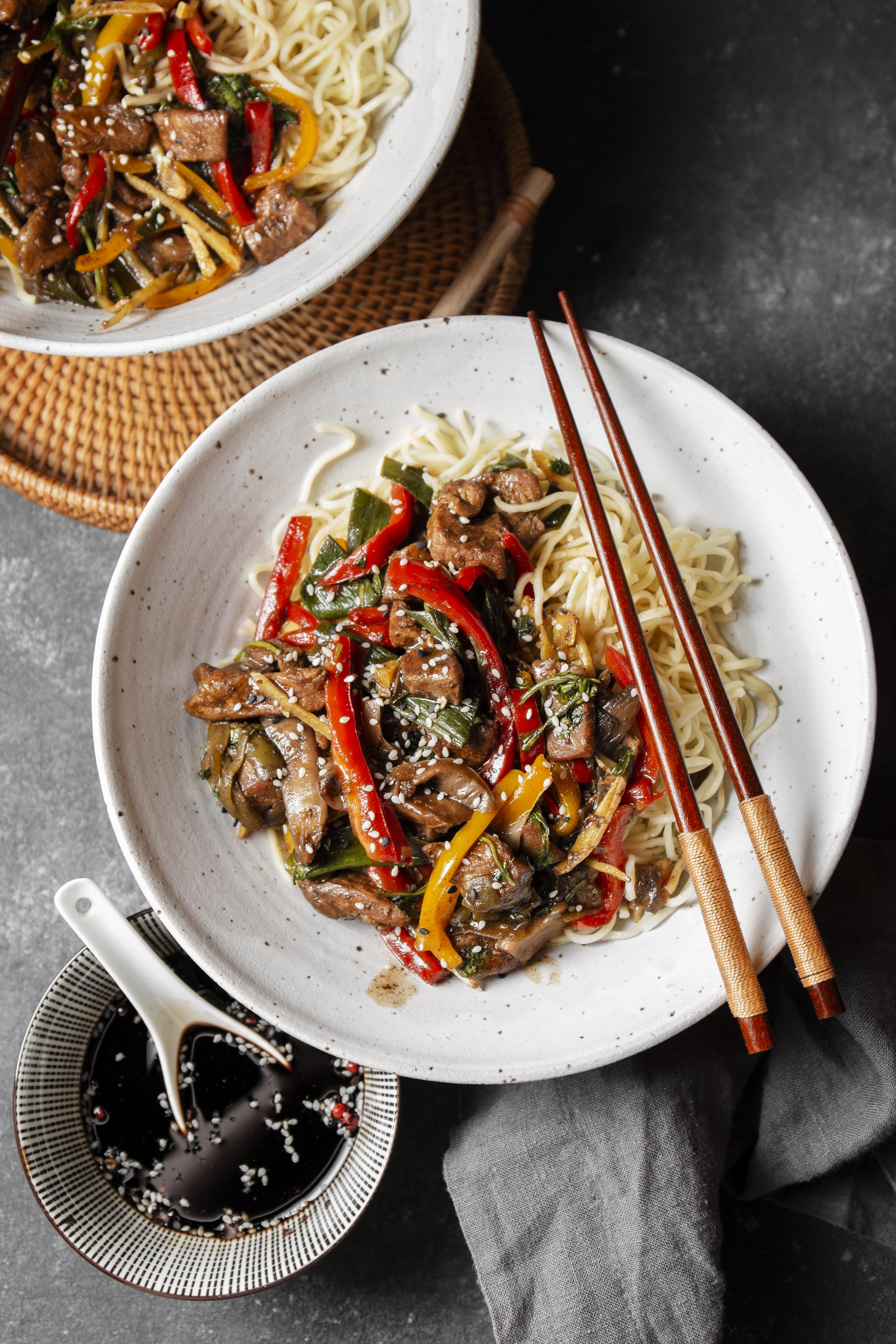 Japchae is a super tasty stir-fried noodle dish made from sweet potato noodles. Packed with a vibrant mix of sautéed veggies, this dish is all about those sweet and savory vibes. It’s a great option for meal prep too, so you can whip up a big batch for the week!